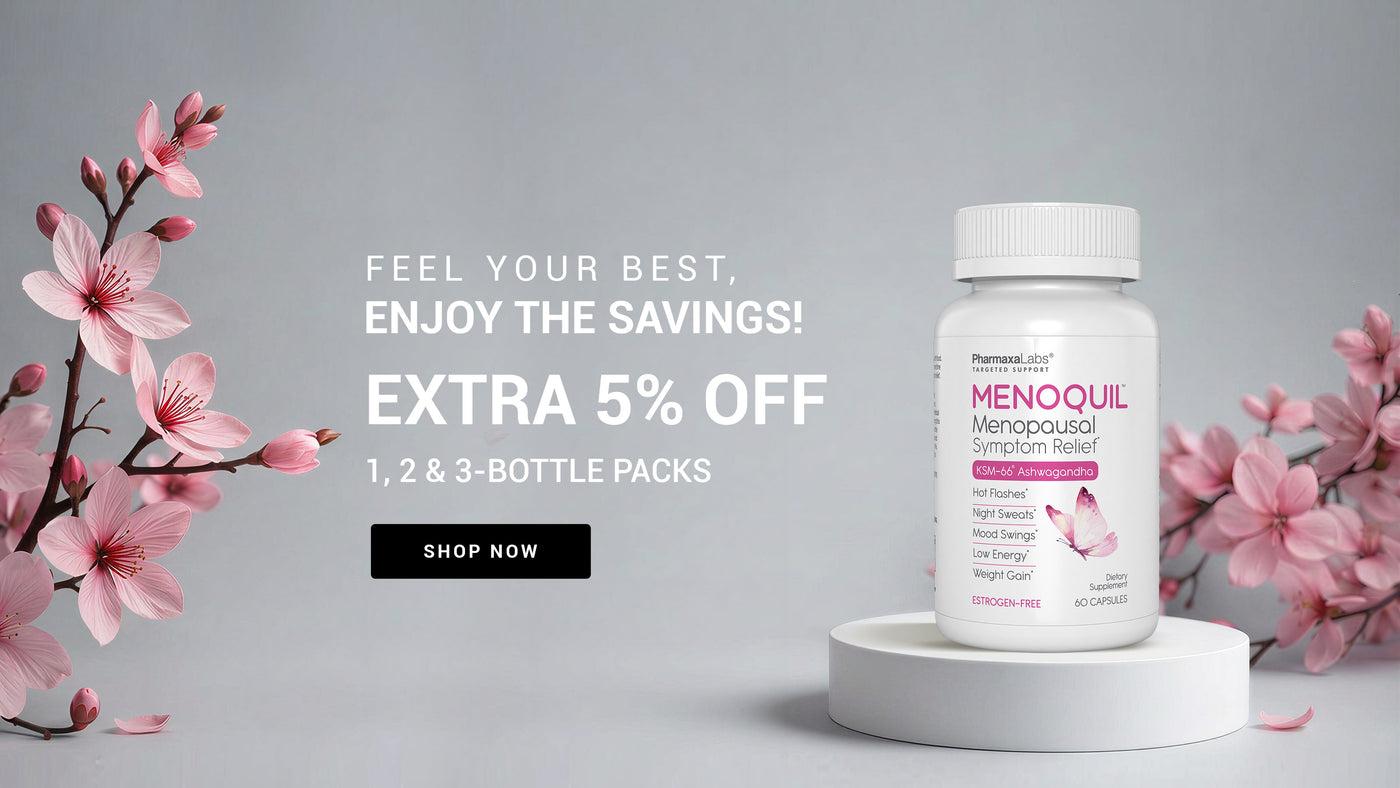 Menoquil is an all-natural menopause supplement designed to address uncomfortable symptoms such as hot flashes and night sweats, while easing stress, promoting energy, and enhancing overall quality of life.
