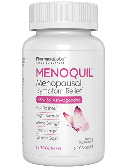 Menoquil is an all-natural menopause supplement designed to address uncomfortable symptoms such as hot flashes and night sweats, while easing stress, promoting energy, and enhancing overall quality of life.